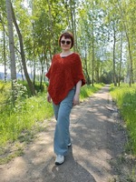 Размер пончо 63 см на 63 см. Пряжа Alize Barcum Klasik 100 гр 210 метров. Цвет 36 терракот. Акрил 100%. Спицы 3.5. Вес пончо 435 гр.