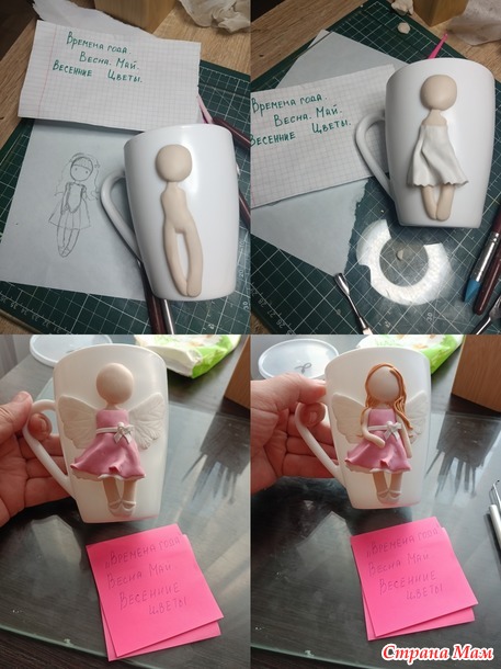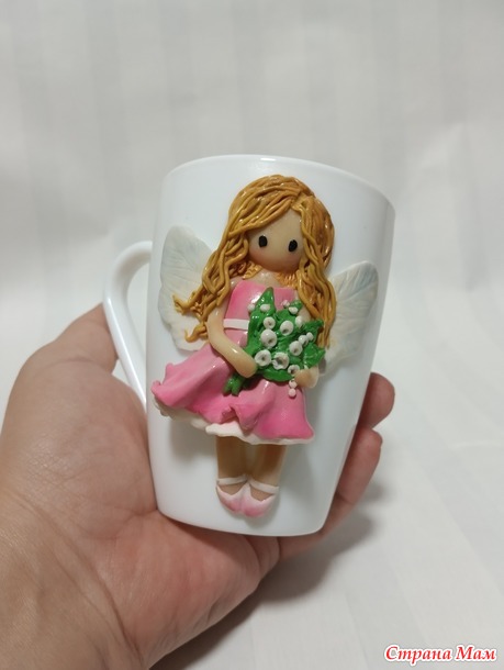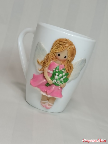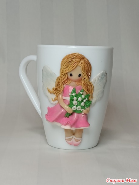 Третья чашка, Ангелок с ландышами. Ландыши по моему не очень получились, да и вообще именно эту чашку делала. как говорят - на коленке