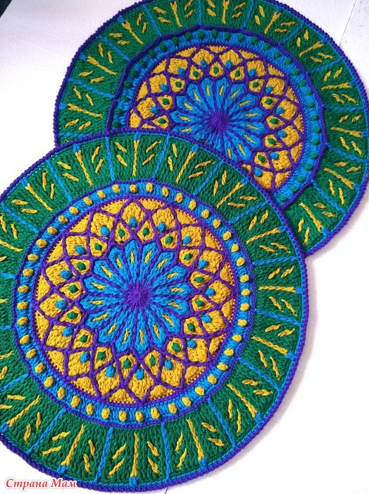При вязании этих сидушек использовала 2 мастер-класса Евгении Тыченко.