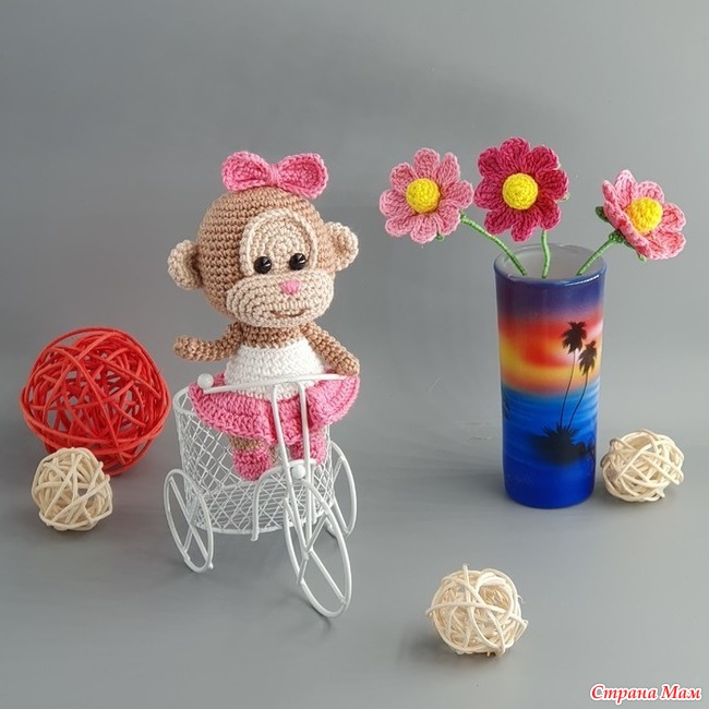 Связалась у меня вот такая озорная обезьянка в совместнике. Росточка она совсем небольшого 9см, с бантиком 10см.