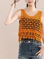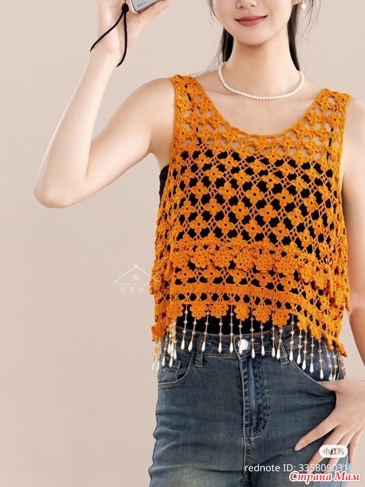 Ажурный топик с цветочным узором и красивой бахромой.
