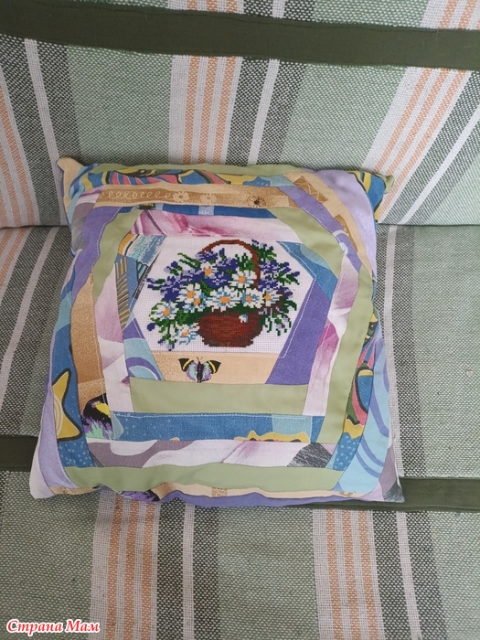 Забыла добавить, что оформила вышивку в подушку. Табличка где-то уже утеряна, есть только такие фото.