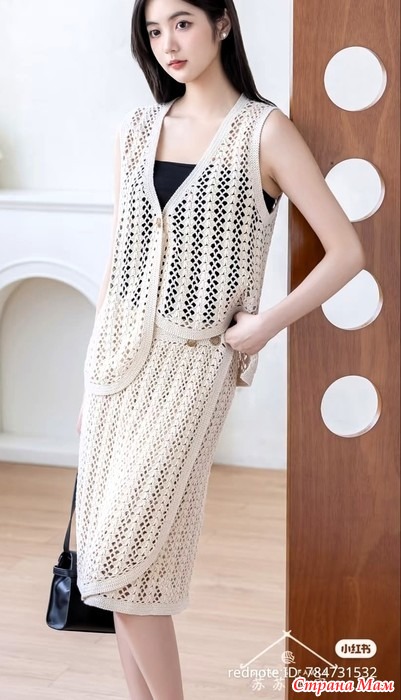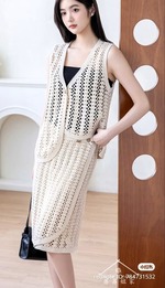 Она состоит из левой полочки, правой полочки, спинки, плетёного полотна,пройма, основного края и пуговиц. Левая и правая части здесь различаются по левой и правой стороне, когда изделие надето. Сначала вяжите крючком переднюю и заднюю части по отдельности, а затем соедините соответствующие области. Затем вяжите крючком край рукава вдоль манжеты, затем вяжите основной край вдоль планки, выреза горловины и края подола переда и спинки, и, наконец, пришейте пуговицы в соответствующие места планки.