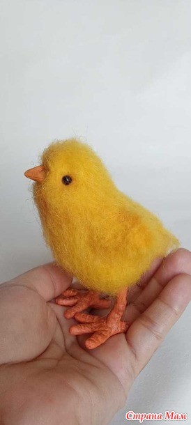 Цыплёнка очень захотелось свалять, когда на Пасху Тома показала нам своего Цыпу с тележкой. Вот, сваляла! Свою "хотелку" выполнила!