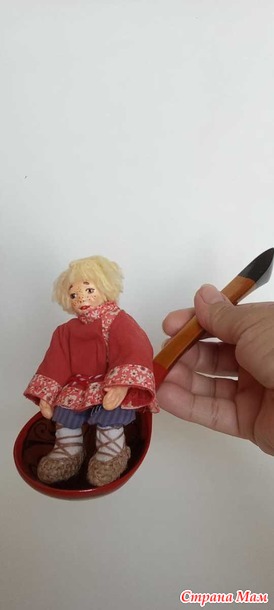 Мальчик –с – Пальчик в деревянной ложке сидит как в качелях!