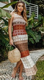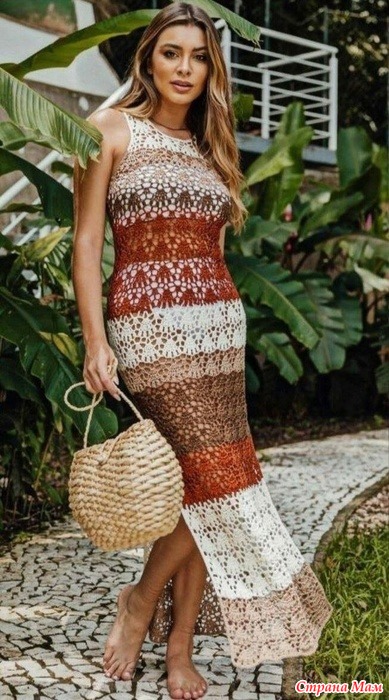 Эффектный длинный сарафан в широкую полоску подойдёт как для пляжного отдыха, так и для городской суеты, если подобрать к нему тонкую подкладку.