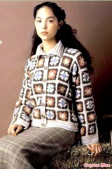 Винтажный жакет из квадратных мотивов с цветами. Крючок.