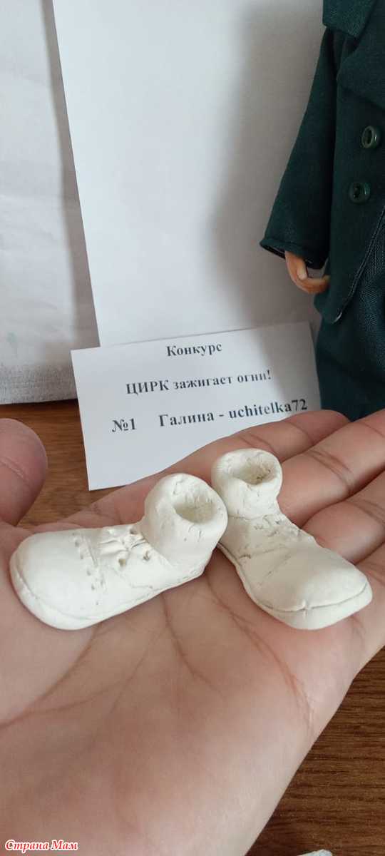 Слепила клоунские башмаки из самозатвердевающей пластики. Узнала, что клоунским башмакам не положены каблуки. Для акробатических трюков!
