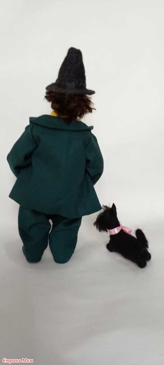 Кукла выполнена в смешанной технике. Рост около 25 см вместе со шляпой.