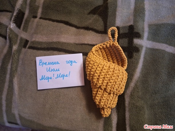 Тема июля - море, море! В морском месяце у нас в группе было связано несколько ракушек. Вот и я тоже решила присоединиться. У меня получилась жёлтая ракушка.
