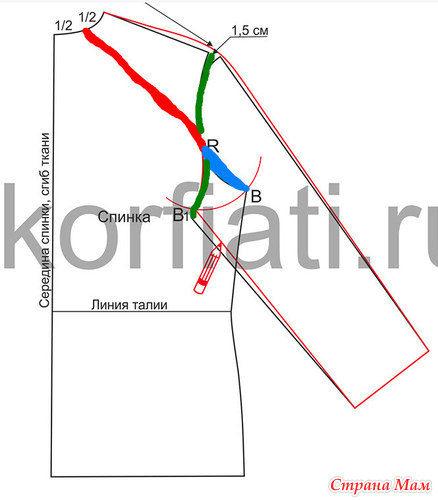 на примерке хорошо будет видно, на сколько удлинить спинку за счет азиатского ростка.