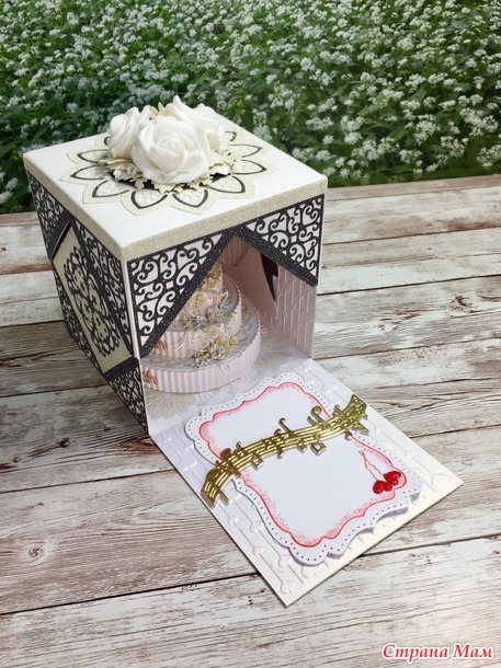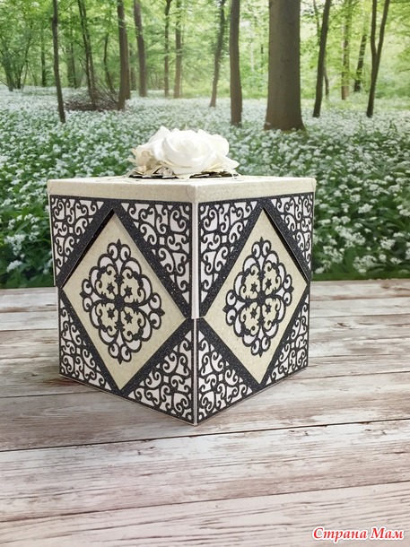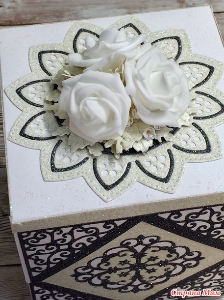 Эту коробочку в Португалии подарили молодожёнам. Заказ был в чёрно-белом оформлении, у меня здесь три цвета - чёрный, белый, бежевый. Сделала ее год назад. Да.... я целый год ничего не выставляла...