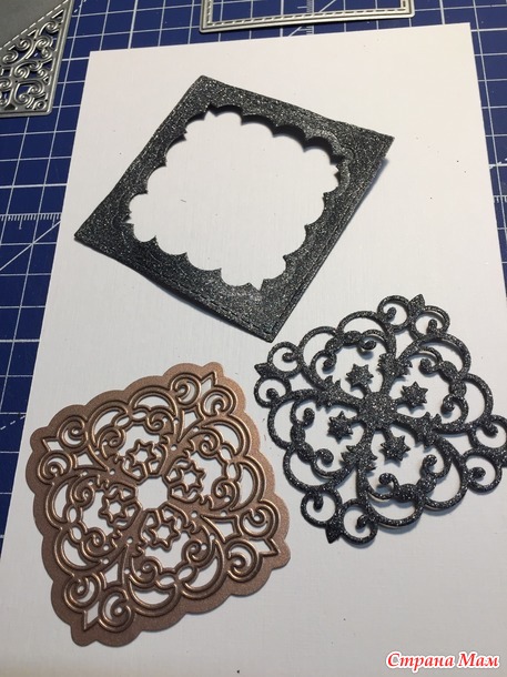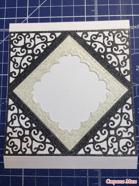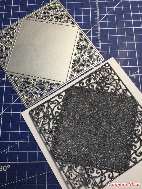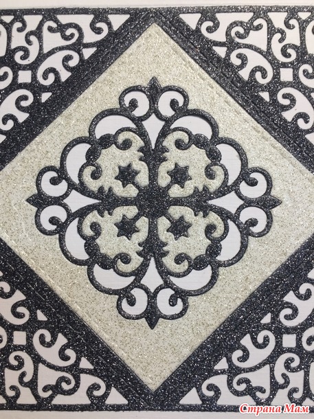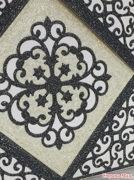 Чёрная бумага с блёстками, красивая... но много черноты в моём случае не очень хорошо. Поэтому буду превращать этот черный квадрат в красивый.