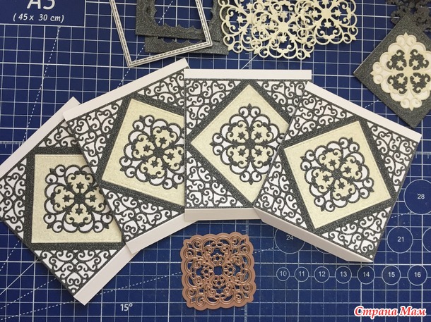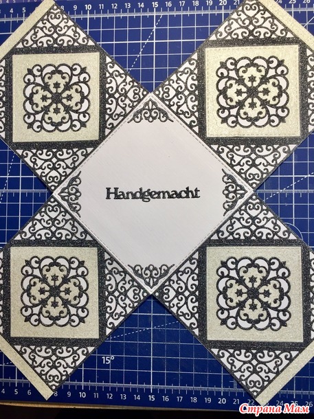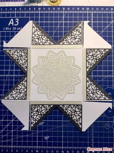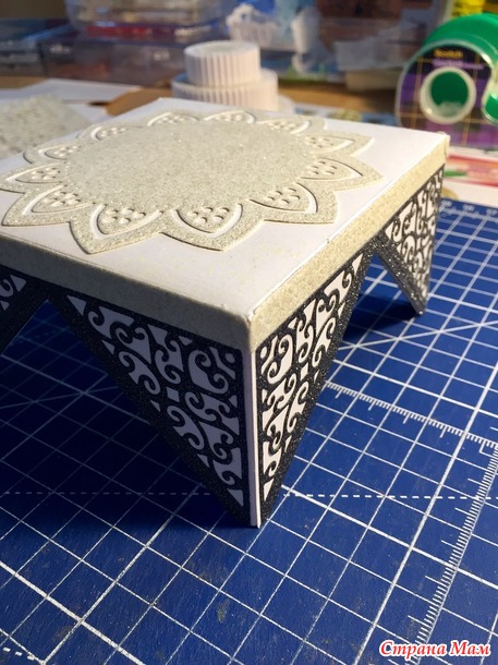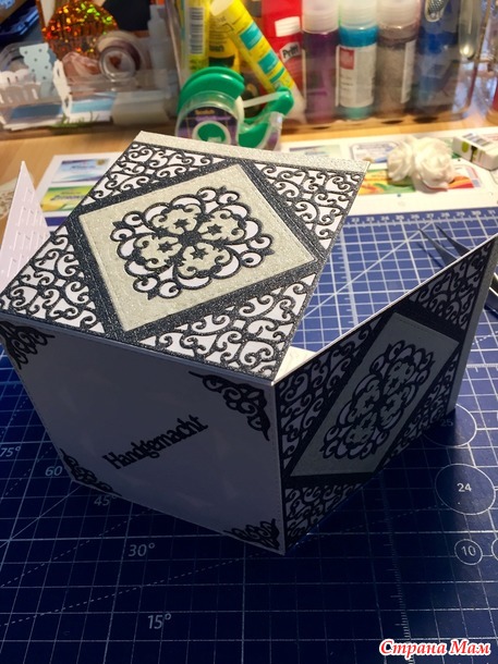 Решила сохранить боковые узоры, поэтому крышка у коробочки с такими углами.