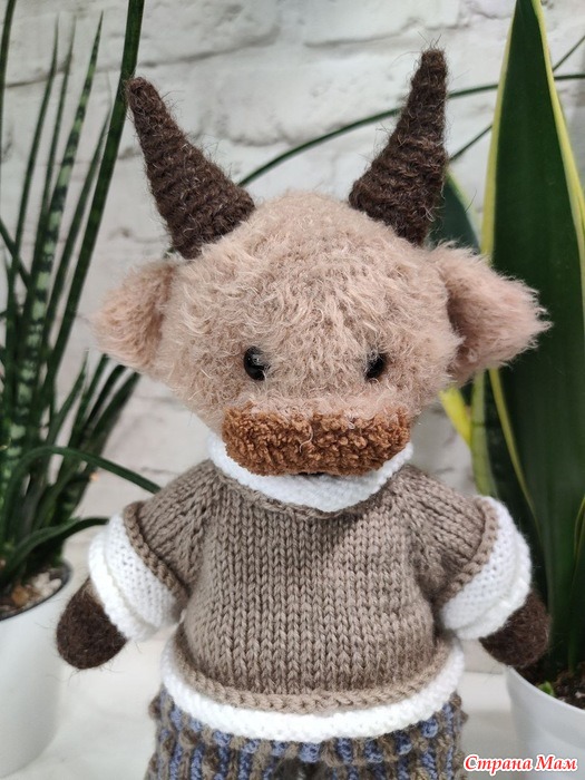 Вот и довязала я бычка. На мой взгляд, это самая интересная игрушка из пяти, описания которых есть в книге.
