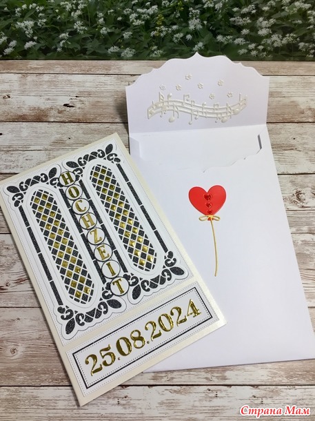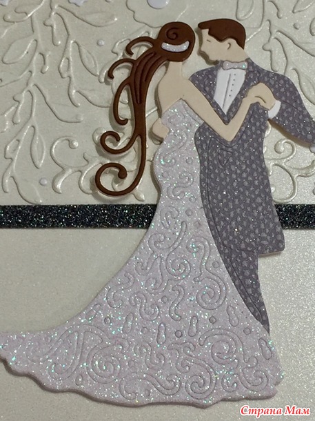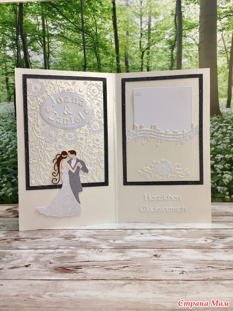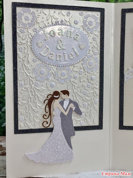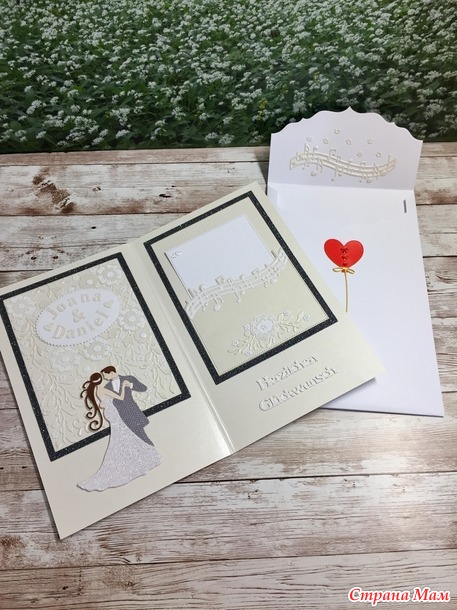 Когда бабушка пришла забирать открытку и коробочку, я говорю впервые делаю свадебные в черно - белом цвете... она говорит, а у молодых и в квартире всё в черно - белом цвете. Свадьба была в Португалии, у невесты все родственники там живут.