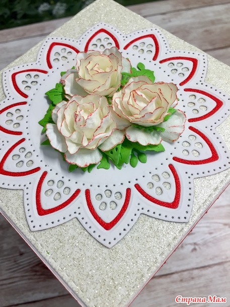 Таких коробочек я сделала две. Эта для моей внучки, ей исполнилось 15 лет.