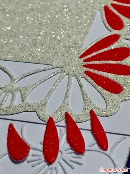 По краю розочек прошлась ручкой, в которой наполнитель - красный гель с блёстками.
