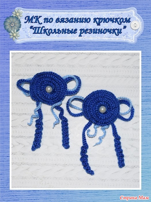Вяжем нитью голубого цвета, крючок номер 5/0 (3 мм).