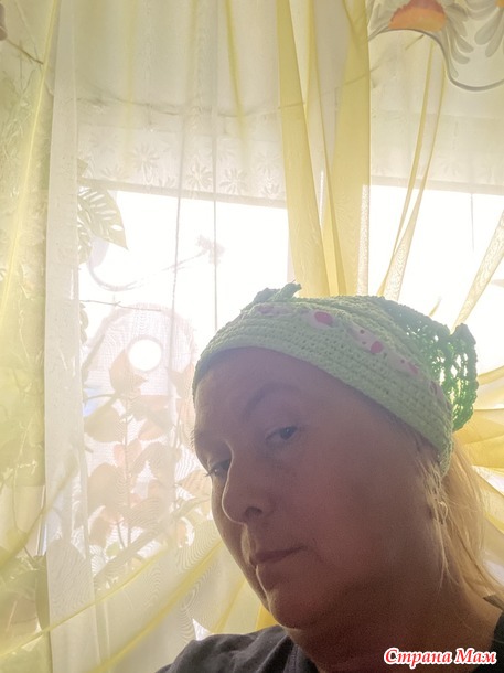 Может кто-то посмеется над таким способом вязки. Но при том, что это фантазия от первой петли и до последней, эта косыночка замечательно села по голове! И я надеюсь, что ненастье к нам заглянувшее сменится еще теплым летом, а может и мы еще соберемся в теплые страны! И косыночка будет меня долго радовать!!!