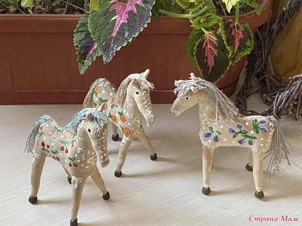 Всем дочитавшим до конца, огромное спасибо!!! Я довольна своим результатом. Выкройка рабочая. Лошадки получились изящные и уверенно стоящие на ножках. Станут прекрасными сувенирами в грядущий год Лошади. Рост их где- то 13см, вместе с копытами. Всем отличного дня! И новых прекрасных работ!!!