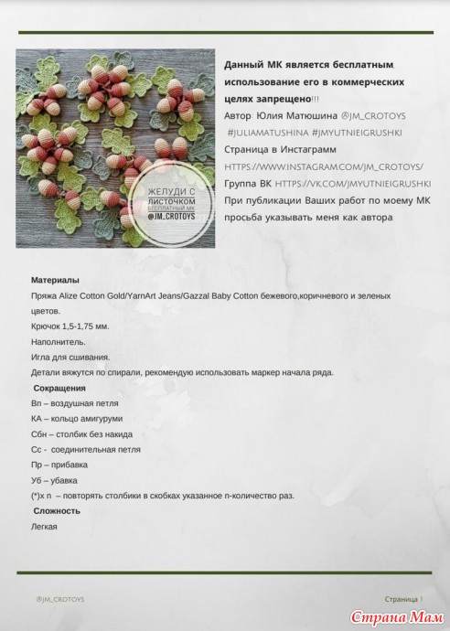 Я хотела желудя связать, знаю точно, что описание было захомячено, но не могу найти