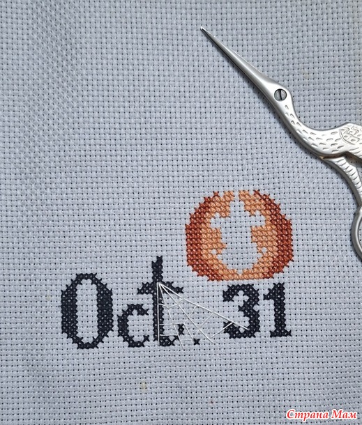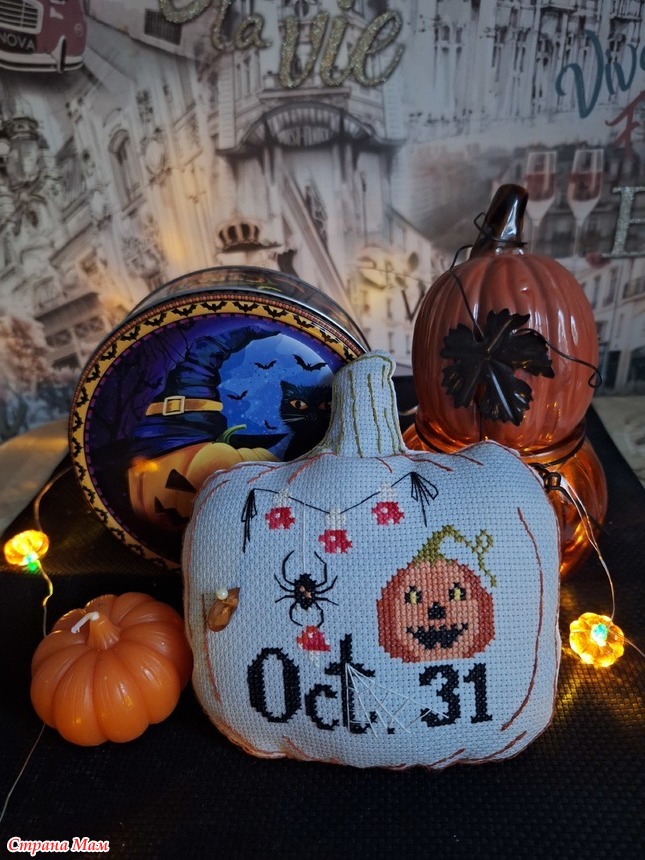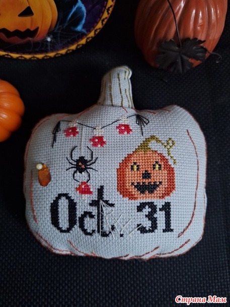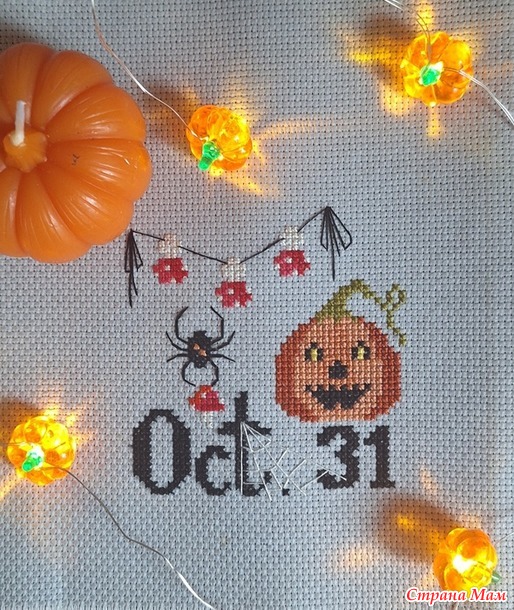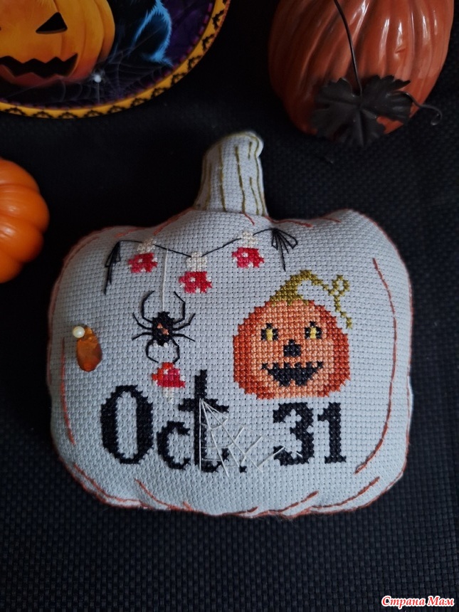 Только сейчас увидела, что паук в воздухе висит, это я ниточку его не вышила, надо исправить.