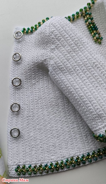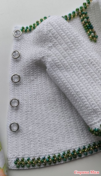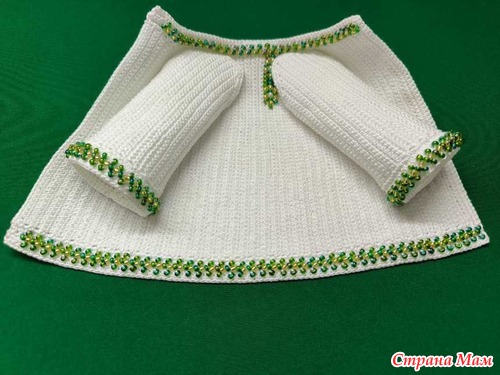 Немного обвязала вырез горловины и низ изделия закрыла рубчиком.