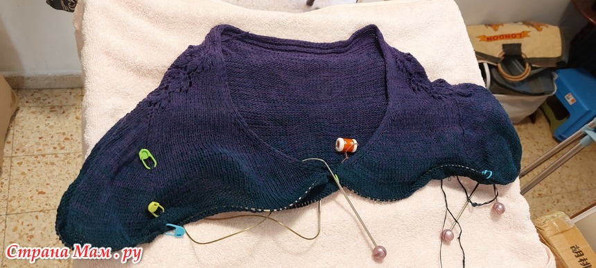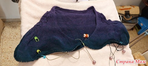 Один рукав был связан, но распустила из-за некрасивых убавления, которые испортили и потеряли весь ажур. Свяжу по прямой, без убавлений-и манжет немного присборю при закрытии.