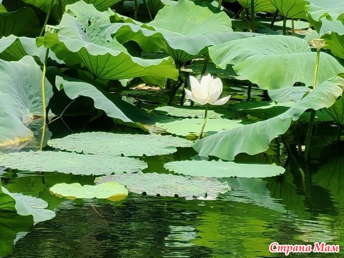 На делянке пекинской сельхоз академии заметила огромный цветущий лотос.