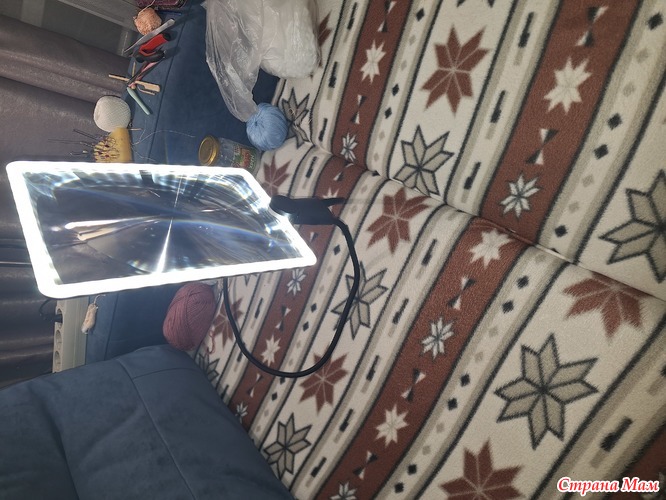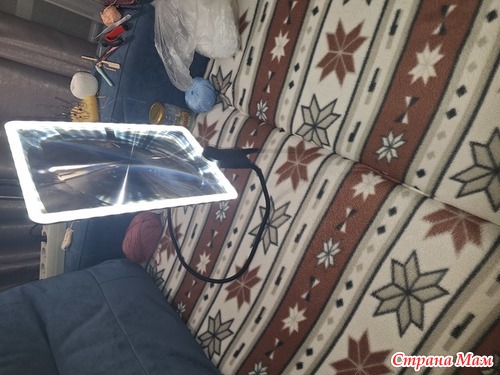 Очки для дали у меня на неполную коррекцию минус 5,5. В них я через лупу ни шиша не вижу. Очки для чтения минус 3,5. В них прекрасно! Глаза совершенно не устают. А вот скосить глаза на МК, повернув голову, удобно. И даже сериалы умудряюсь смотреть. Свое положение лупы нужно найти, терпеливо поигравшись. Она легко это самое положение меняет. Есть и минус, который я преодолела - проволока, которая надевается на шею, длинновата для меня. Я растянула ее пошире в разные стороны и стало удобно. А то на животе лежала) Вес ничтожный