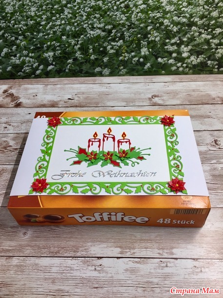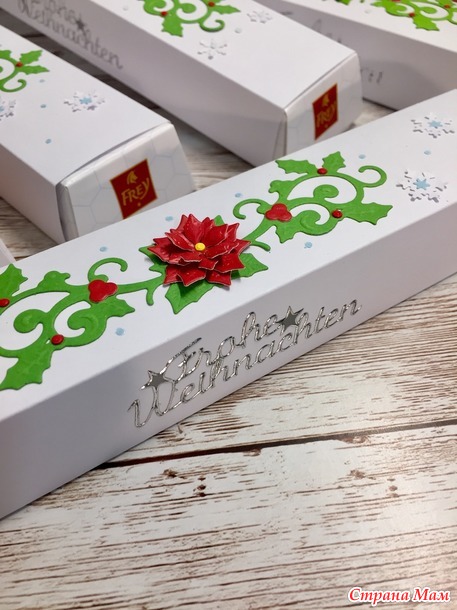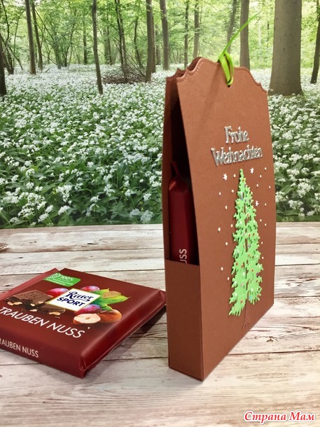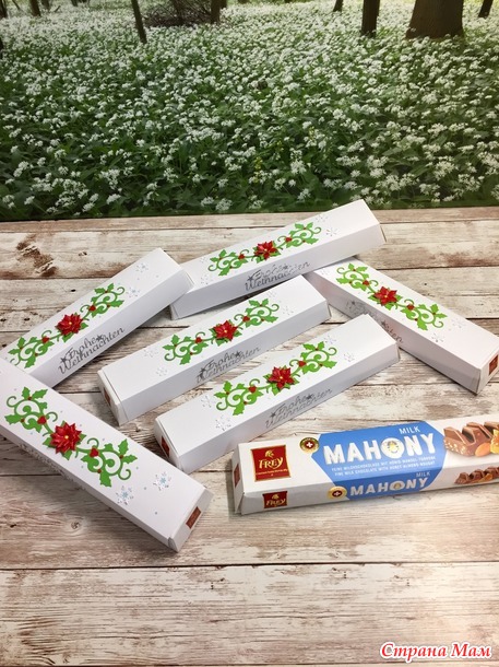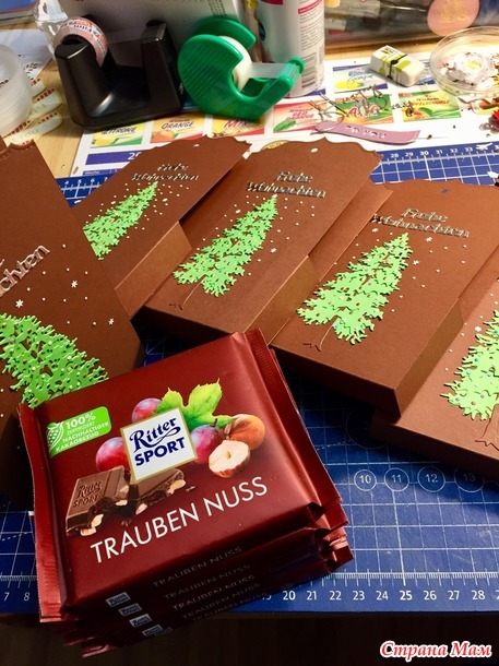 Упаковочки с шоколадкой подарила коллегам по работе. Как знак внимания, приятно же. Живу в Германии уже 30 лет, немцы всегда на Рождество дарят друг другу разные мелочи, сладости, поделки, выпечку. Я тоже каждый год что-нибудь дарю. (Дорогое не дарится.) Эти упаковочки делала на Рождество 2024 года, мне оставалось ещё работать 6 мес. до пенсии.