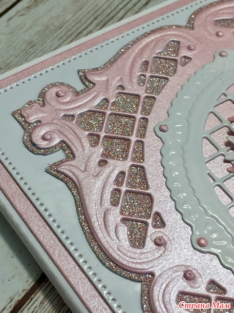 Розовая с блестками.
