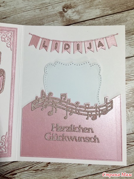 У дочери был день рождения. Повторила свою открытку (я уже делала такую) с небольшими изменениями. Хотя это и повтор, но у нее точно нет такой открытки. В компьютере я завела на каждого альбом, кому что дарила и на внуков тоже, чтобы не повториться. Потому что я по одной открытке не делаю, заначка с открытками всегда имеется.
