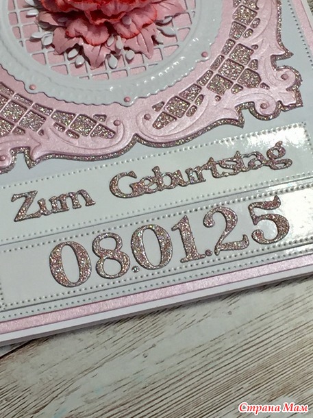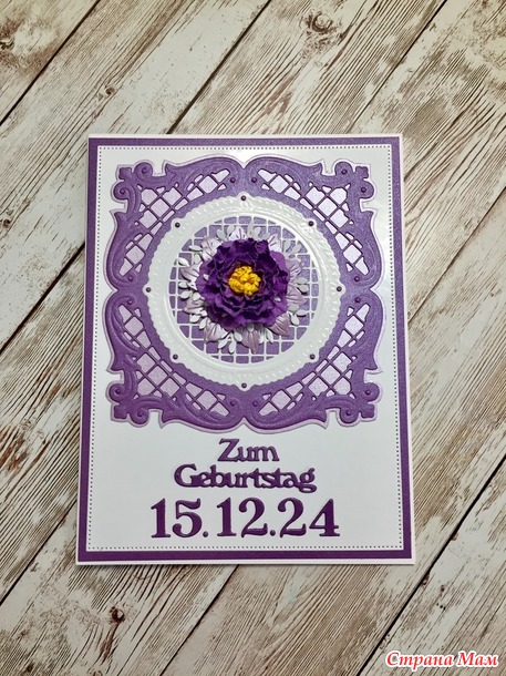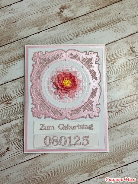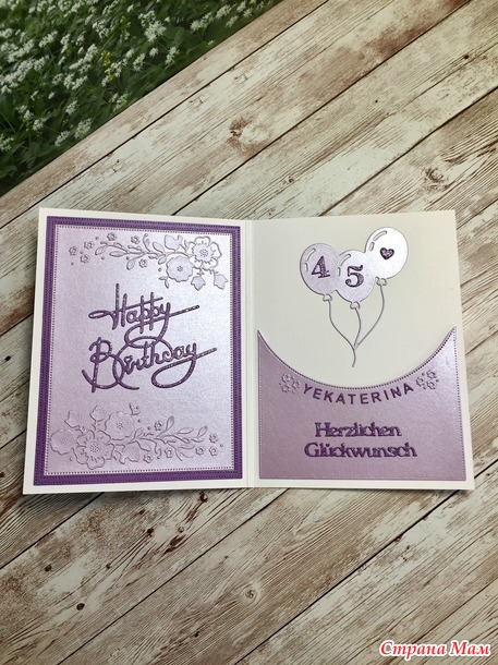 У дочери был день рождения. Повторила свою открытку (я уже делала такую) с небольшими изменениями. Хотя это и повтор, но у нее точно нет такой открытки. В компьютере я завела на каждого альбом, кому что дарила и на внуков тоже, чтобы не повториться. Потому что я по одной открытке не делаю, заначка с открытками всегда имеется.