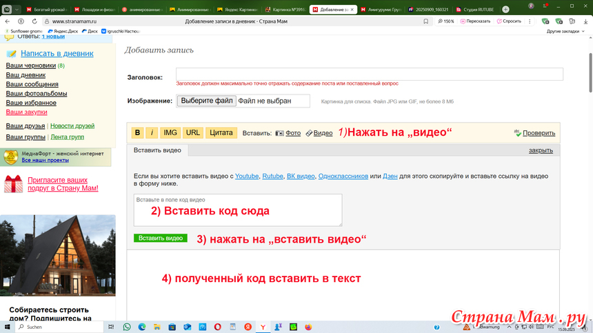 Я своё видео загружаю на Ютубе или Рутубе, копирую ссылку на видео.