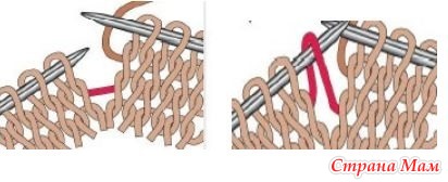 Ввести левую спицу под протяжку между петлями движением спицы от себя, и провязать петлю лицевой за заднюю стенку. На видео до 1:15