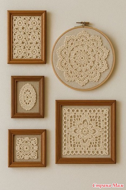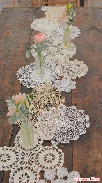 Предлагаю вниманию рукодельниц ещё несколько идей для оформления интерьера в винтажном стиле с использованием имеющихся вязаных кружевных салфеток.