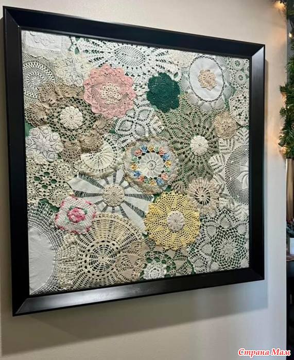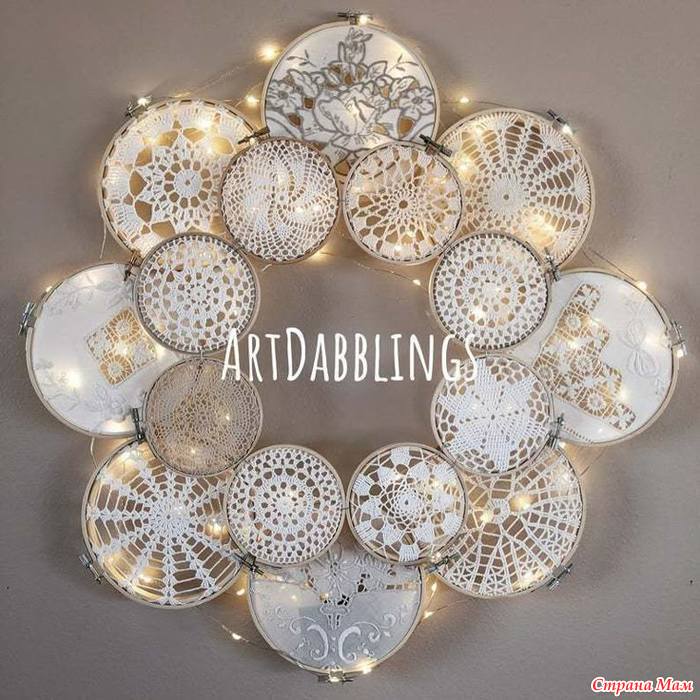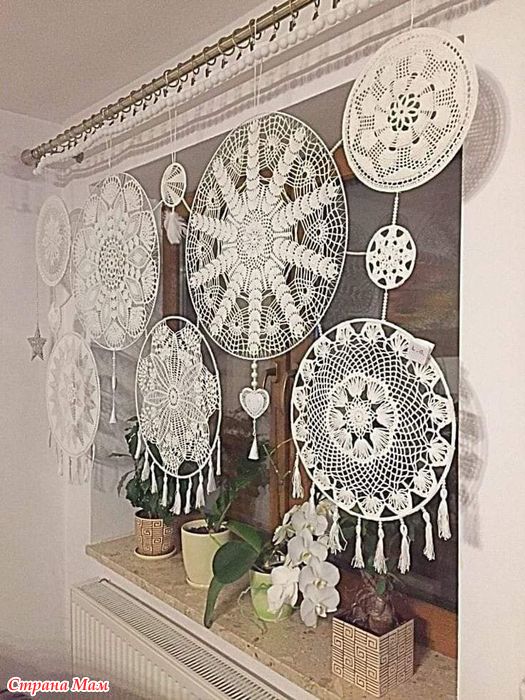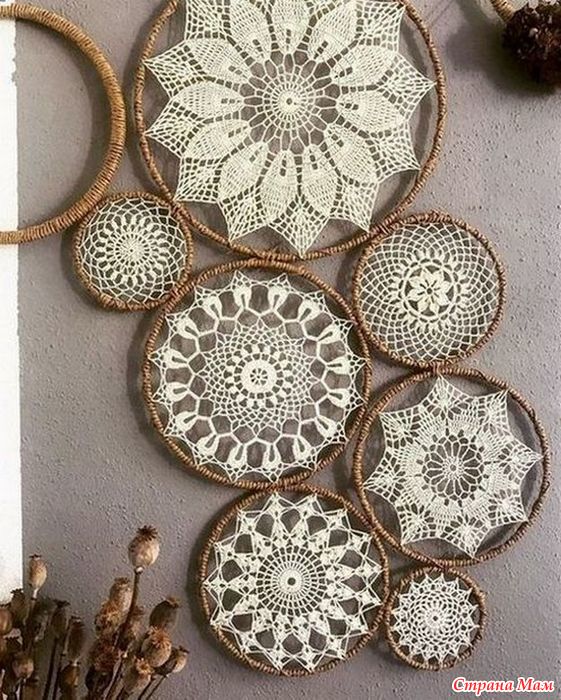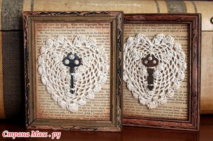 Предлагаю вниманию рукодельниц ещё несколько идей для оформления интерьера в винтажном стиле с использованием имеющихся вязаных кружевных салфеток.