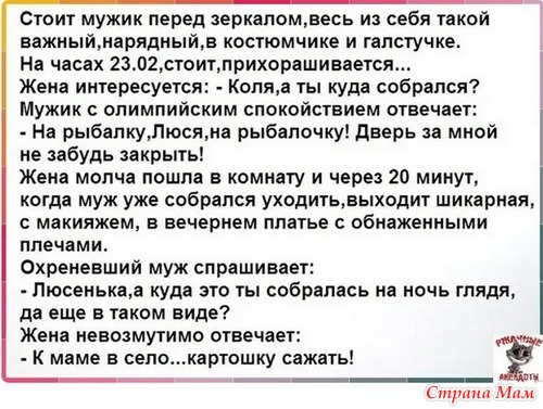 вот-вот! когда кум был жив, то часто мужа моего сманивал на рыбалку на дальняк, за много км от дома. поедут и ничего не привозят. зато отлично отдыхают
