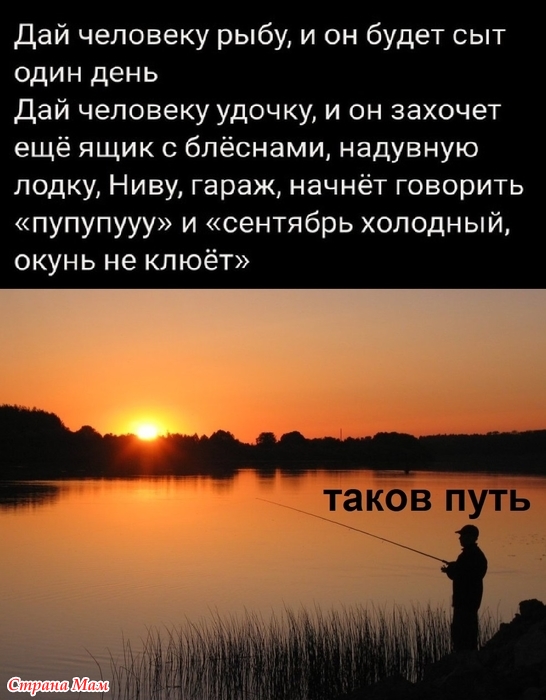 О, даааа. Моему папе так однажды дали двустволку, отправив его учиться охоте - мама до сих пор вспоминает, как он скупал все-все-все для охоты. А рыбалка - это ж всесезонное хобби