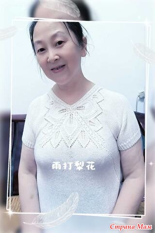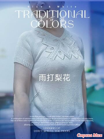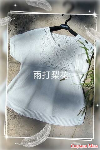 Джемпер с короткими рукавами и узором Kunst на горловине. Спицы.