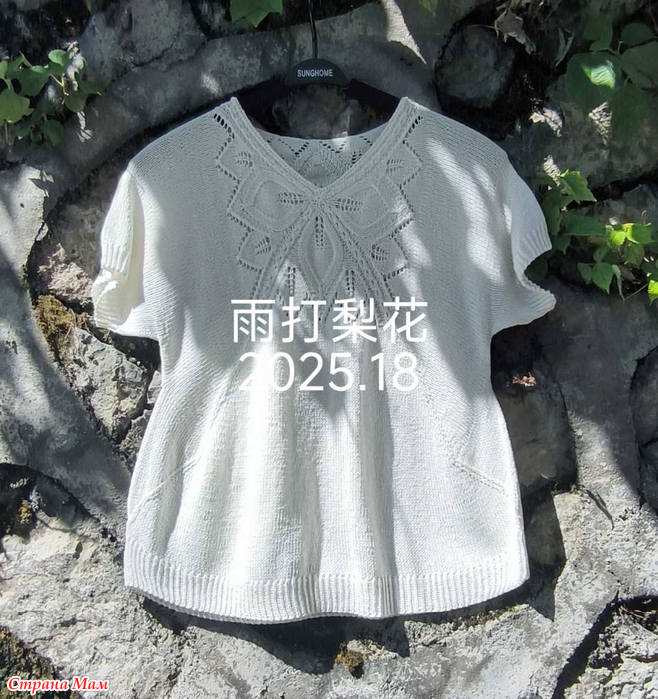 Джемпер с короткими рукавами и узором Kunst на горловине. Спицы.