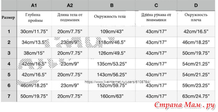 Чтобы правильно выбрать размер, рекомендуется связать образец из используемой Вами пряжи, затем проверить плотность вязания и подобрать соответствующий размер спиц, измерьте полный обхват Вашей груди, затем прибавьте желаемый припуск на свободное облегание. Выберите самый близкий размер к окончательному обхвату груди.