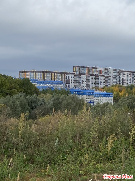Это наш микрорайон Байконур. Вот тот небольшой с синими крышами, утопающий в растительности.