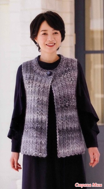 Для переда и спинки наберите двойную воздушную петлю нитью и вяжите узорчатой ​​гладью.