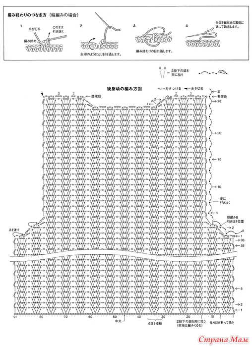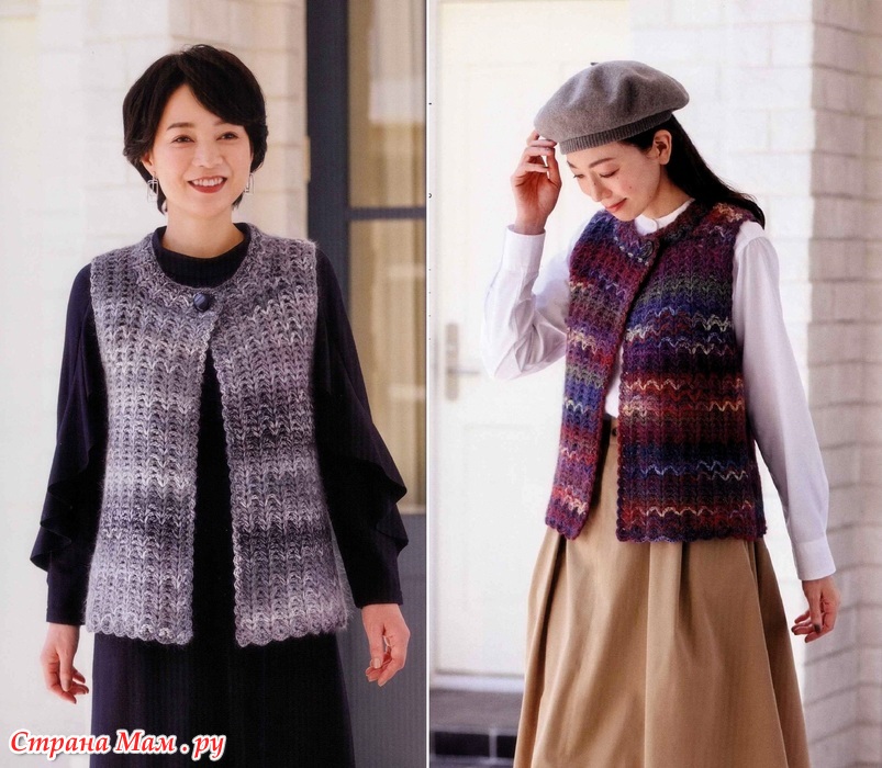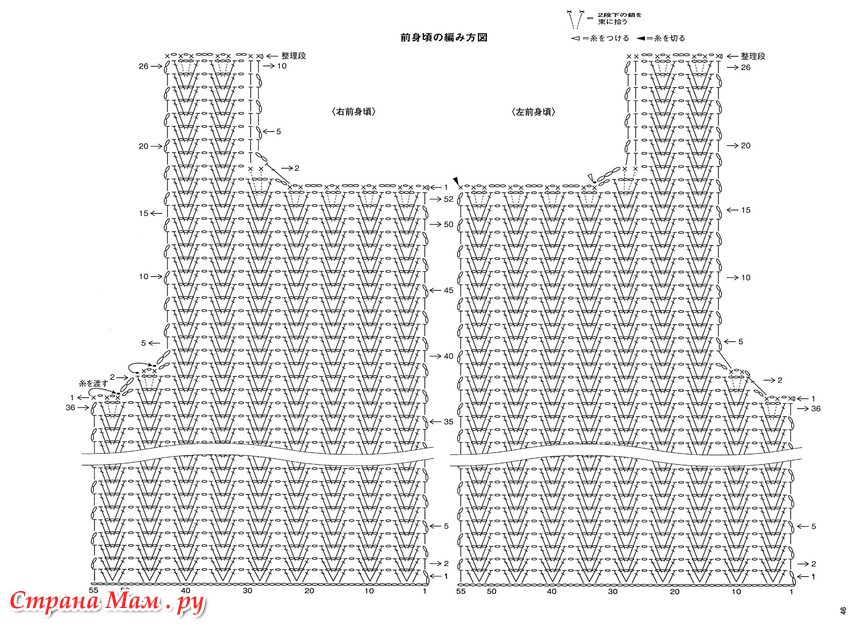 Для переда и спинки наберите двойную воздушную петлю нитью и вяжите узорчатой ​​гладью.