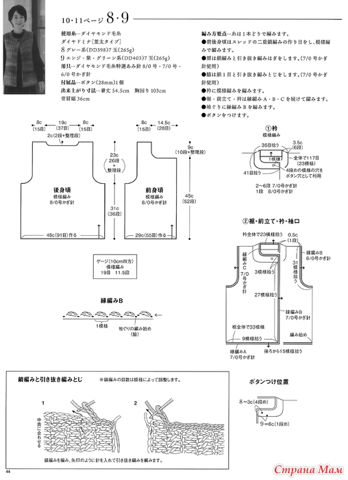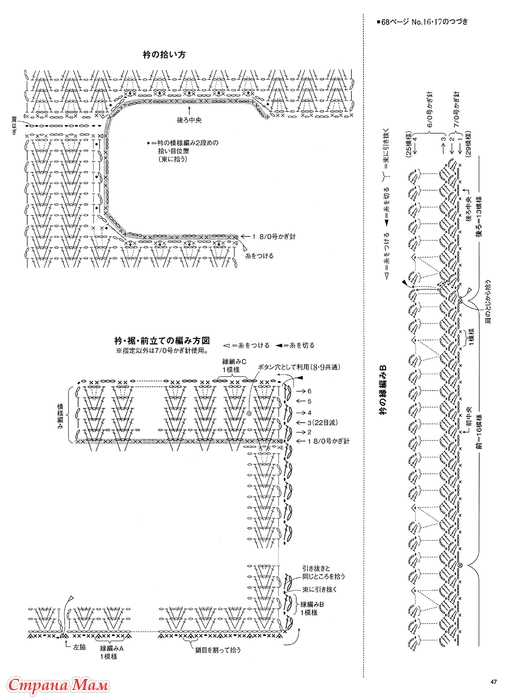 Для подола, планки и воротника вязать по очереди края A, B и C.