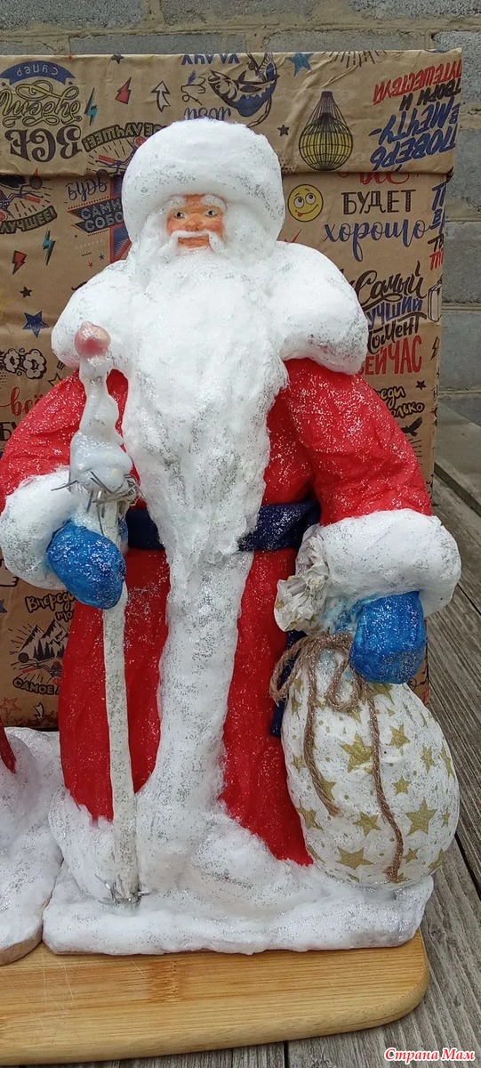 Сначала. честно говоря, сделала для этого Деда Снегурочку-девочку, по пояс ему ростом. Но послушалась мужа. Тот сказал, что Снегурочка - это девушка должна быть, а не девочка. Исправилась. Девочку-Снегурочку потом к какому-нибудь следующему Деду пристрою.