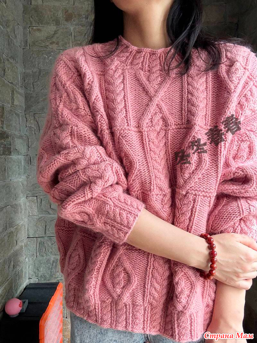 Свободный свитер Chunyu Chunfeng из толстой трикотажной пряжи (схемы узоров). Спицы.